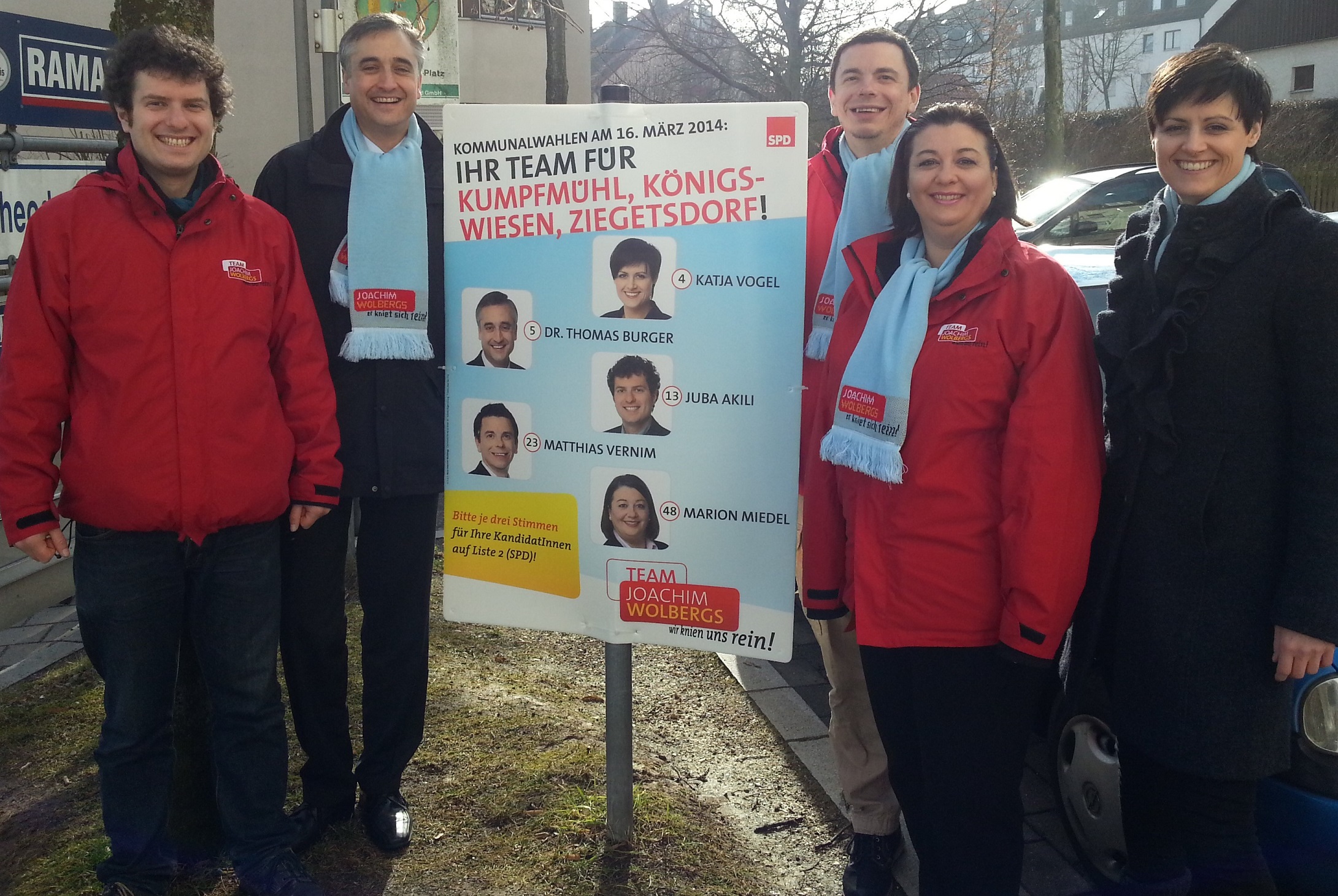 Der SPD-Ortsverein Kumpfmühl/Königswiesen/Ziegetsdorf hat die Sonnenstrahlen genutzt und verteilte am Samstag beim Theodor-Heuss-Platz Informationen über das örtliche KandidatInnen-Team. Außerdem stellte er das erste Exemplar seiner Stadtteilplakate vor, die in Kumpfmühl, Königswiesen und Ziegetsdorf für die örtlichen KandidatInnen werben werden.