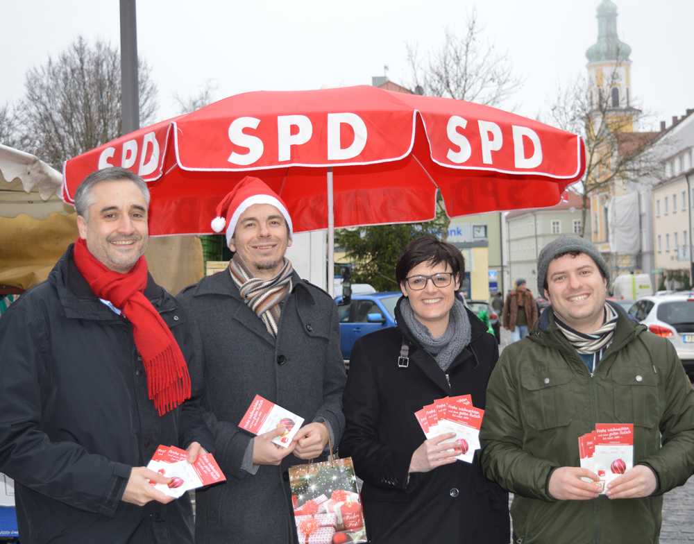 Trotz herbstlicher Temperaturen hat es sich der SPD-Ortsverein Kumpfmühl/Königswiesen/ Ziegetsdorf um den Vorsitzenden Dr. Thomas Burger nicht nehmen lassen, am Kumpfmühler Markt sowie am Nahversorgungszentrum Königswiesen-Nord Weihnachtskarten und schokoladige Grüße in Form von Engeln und Sternen zu verteilen.