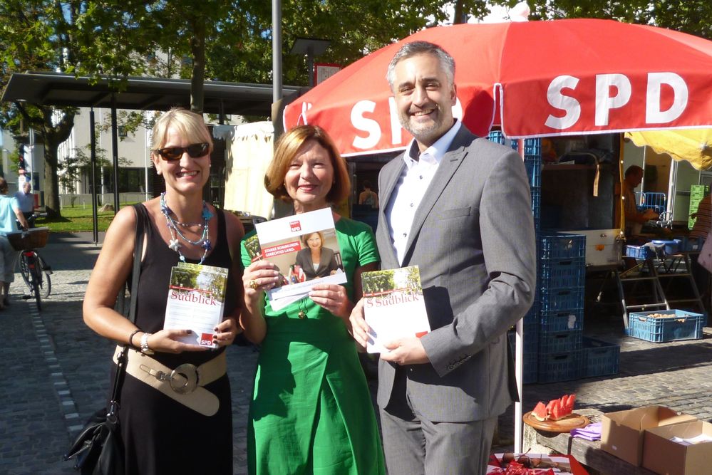 Verteilten den Südblick: Orgaleiterin Yvonne Fischer, MdL Margit Wild sowie Vorsitzender, Stadtrat Dr. Thomas Burger