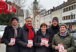 Der SPD-Ortsverein Kumpfmühl/Königswiesen/Ziegetsdorf um den Vorsitzenden Dr. Thomas Burger ließ sich auch von frostigen Temperaturen nicht abhalten, am Kumpfmühler Markt die traditionellen Weihnachts- und Neujahrskarten sowie weihnachtliche schokoladige Grüße in der Form von Nikoläusen und Engeln zu verteilen.